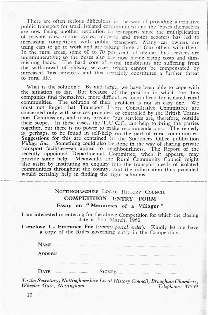 Editorial [and] COMPETITION ENTRY FORM: Essay on "Memories of a Villager"]