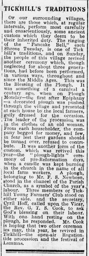 TICKHILL'S TRADITIONS [Plough Blessing and Plough Monday]