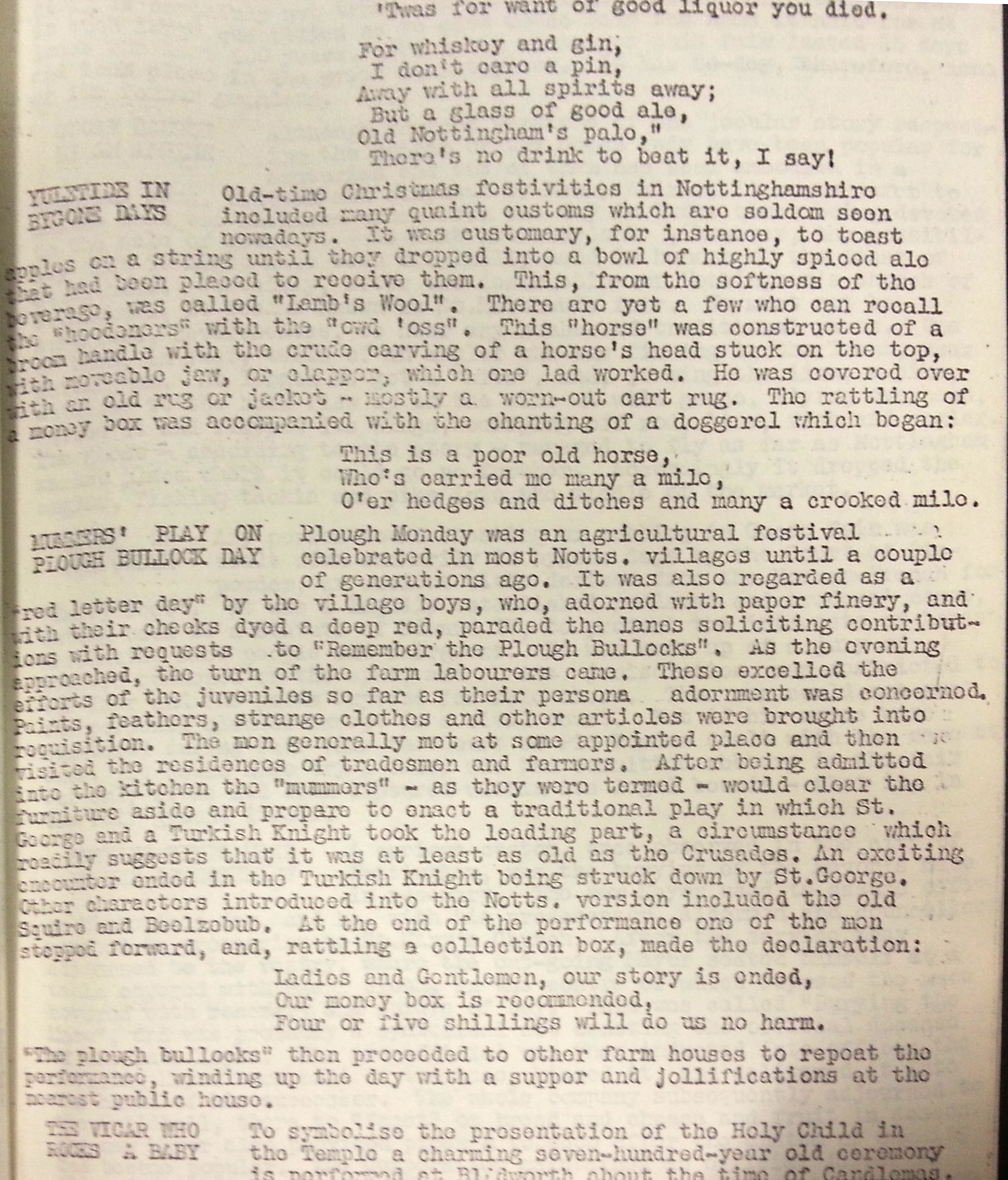 Nottinghamshire List of Folk Plays & Related Customs
